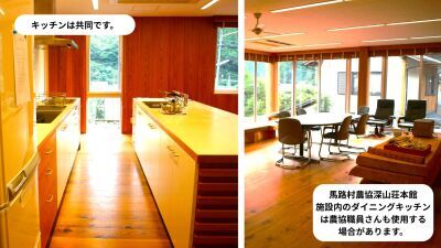 深山荘本館は、馬路村農協社員寮のゲストルームです。馬路村の農協の職員さんと共同で利用する場所等(キッチンダイニング、玄関)があります。また、男女比・定員を超えた場合などを考慮して、深山荘別館・お試し住宅等に入居していただく場合があります。共同生活となるため、一人ずつの宿泊スペースを確保できないことをご了承ください。